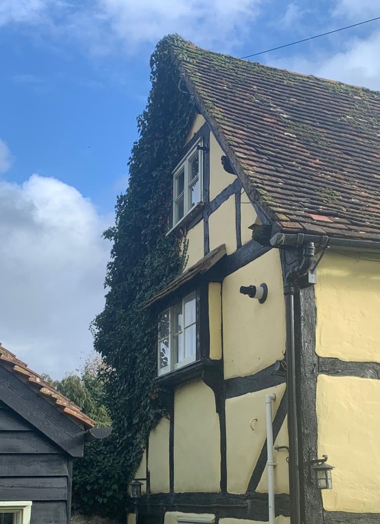 A Grade II listed dwelling which was a small house timber framed house with rendered infill. Originally dating from early C17 it was originally a single unit plan which was extended to 2 units and two storeys. The earlier timber framed rang to the left housed the shop with the entrance below a 3-light casement. The front is faced with later boarding but the left gable wall is exposed and retains a first-floor oriel window on shaped brackets with ovolo mouldings.