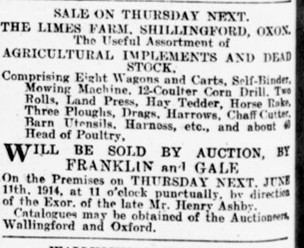 After Henry’s death there were two sales of property and land, one mentioning Lime Farm at Shillingford but where this was is uncertain.