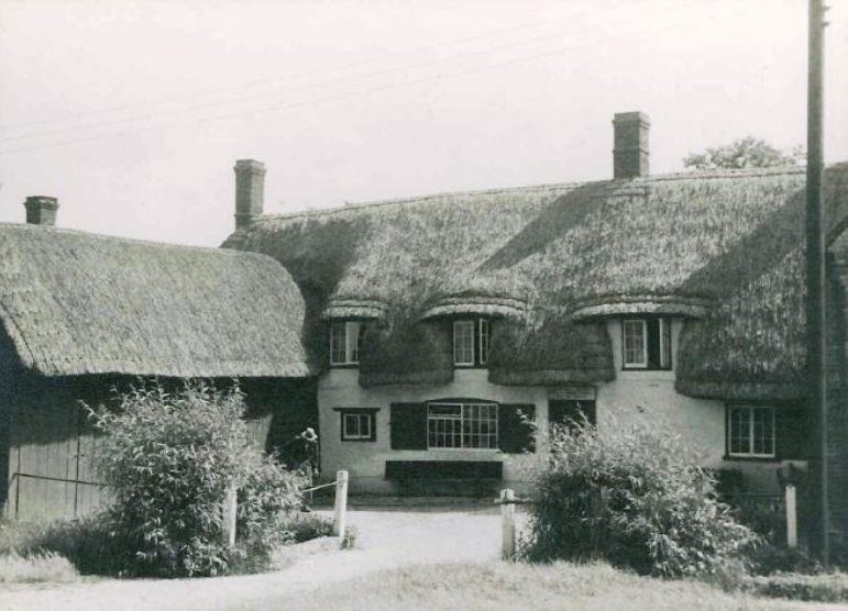 Built of clunch rubble and weatherboarded timber framing, it is now colour washed and has a thatch roof with brick stacks.