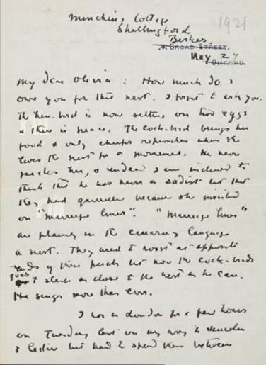 From there he sent a couple of letters to a close friend, Olivia Shakespear, incorrectly attributing Shillingford to Berkshire. He always called his wife George after her middle name.