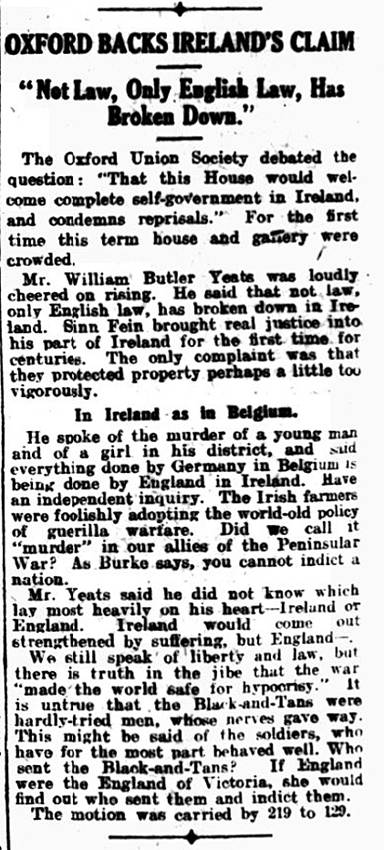 In February 1921 he was at the Oxford Union debating in favour of self-rule for Ireland.